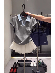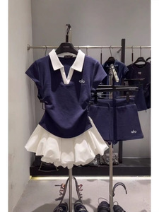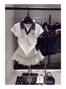 女性のためのカジュアルスポーツスーツ 2025 新しい夏のホットガールポロラペル半袖 Tシャツふわふわスカート 2 点セット