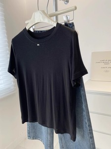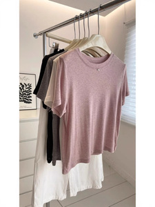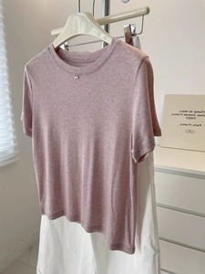 2025夏季粉色薄款软糯亲肤绵羊毛蝴蝶结宽松显瘦短袖t恤女上衣