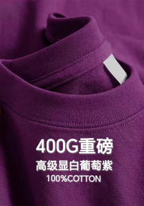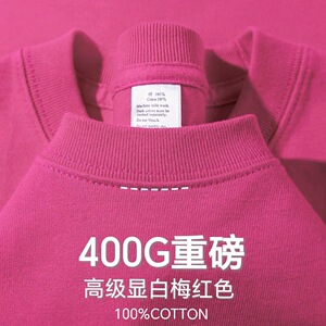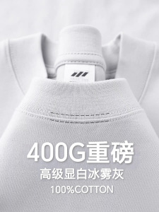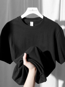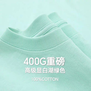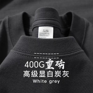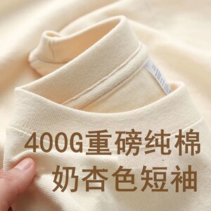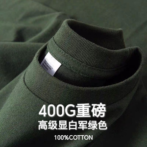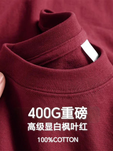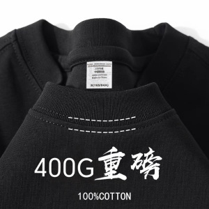 アメリカンスモールネックライン400グラムヘビーウェイトTシャツメンズ半袖夏新作純綿硬めラウンドネック純白ボトムシャツ