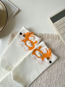 [在庫あり] ホワイト漫画猫ジングルエッグソックス女性夏インコットンかわいい面白いミッドカーフソックス