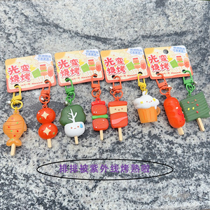 クリエイティブシミュレーション光変色バーベキュースティックバックルおもちゃ人形キーホルダーカップルスクールバッグクリップベビーマシン小さなペンダント