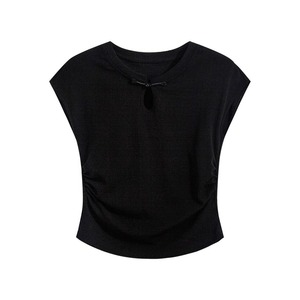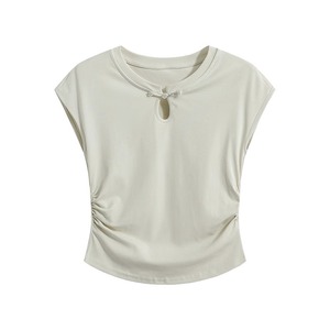新しい中国風のボタン付き小さなフライングスリーブ Tシャツ半袖女性の 2025 夏の新無地スリムフィットプリーツトップイントレンド