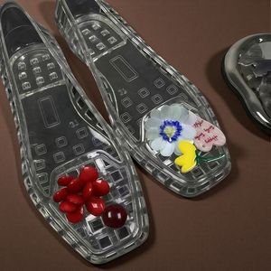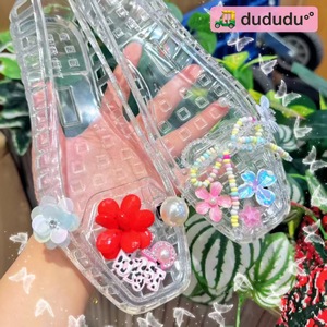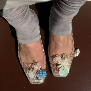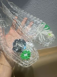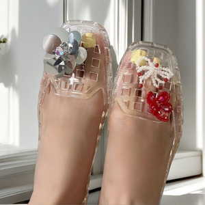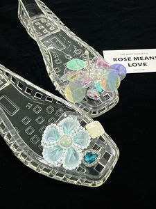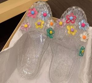 Xiaohongshu 人気のゼリーシューズ、フラワーアクセサリー、下駄、クリスタルシューズ、装飾フラワー、クリスタルサンダル、フラワースリッパ