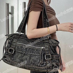 韓国マティンキム李松河同型ウォッシュキャンバス2025新作ショルダーデニムバッグ脇トートバッグ