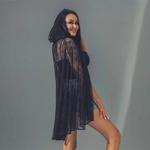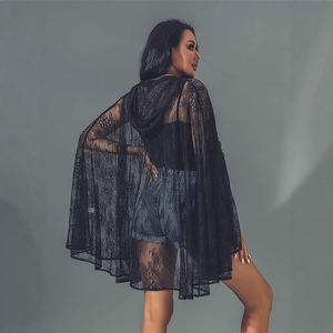 クロスボーダーハロウィンブラックレースフード付きマント魔女ショール細いストラップミッドレングスマントダークスタイルcos