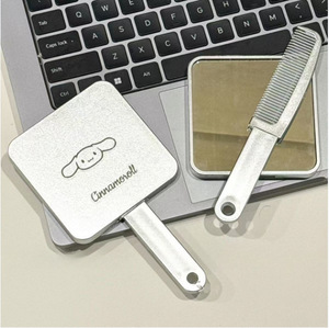 新しいサンリオハンドルミラー、コーム付き、ポータブルメイクアップハンドヘルド化粧鏡、ガールズハートミラー、コーム一体型小型ミラー