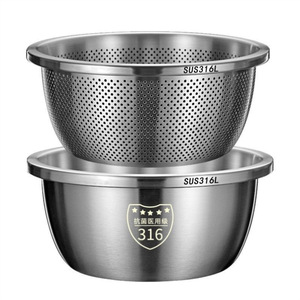 ステンレス製排水バスケット、野菜洗い桶、キッチン家庭用果物洗いバスケット、米洗い桶、ふるい、厚みのある洗面器