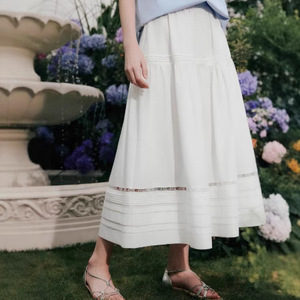 【芸能人同じスタイル】ELLEレースセナ風鈴白スカートレディース2025夏新作Aラインスカートアンブレラスカート
