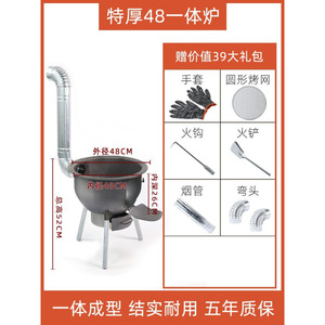【極厚】一体型コンロ48CM+コンロリング3個+コンロギフトパッケージ(ステンレス製煙突エルボ付き)