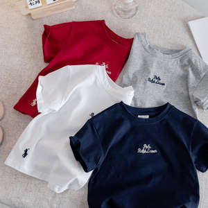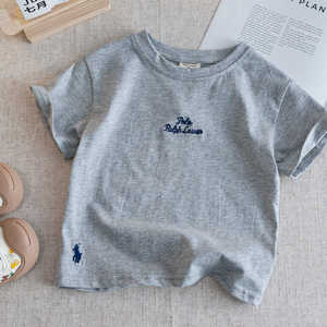 子供 Tシャツ 2025 夏の新製品男の子と女の子のためのシンプルな刺繍文字半袖ベビー韓国ラウンドネックトップトレンディ