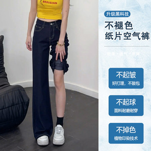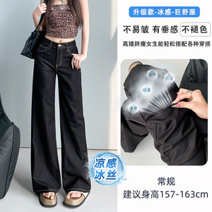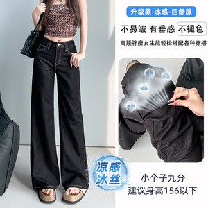 アイスシルククールダークブルー非フィットレッグマイクロフレアジーンズレディース夏薄手2025新作ドレープワイドレッグフレアパンツ