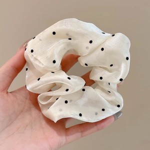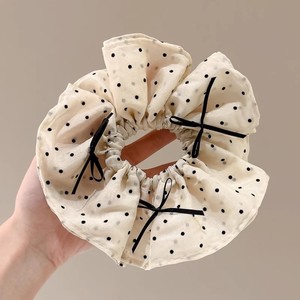 1#クリーム黒水玉ヘアゴム 約13cm