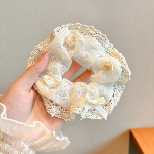 13#クリーミーホワイトのレースのヘアゴム
