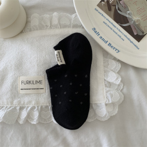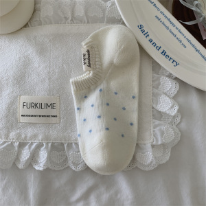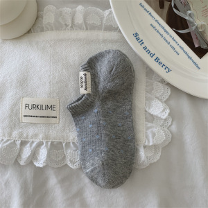 布ラベルソックスレディースソックス通気性春夏薄型滑り止め韓国風カレッジスタイルドットサマーボートソックス