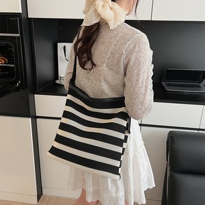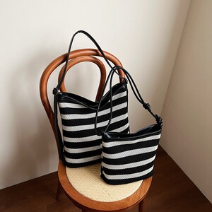 黒と白のストライプのバケットバッグレディース大容量大型バッグカジュアルホリデービーチバッグ多用途ポータブルショルダートートバッグ