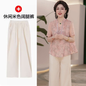 2025年新作夏ママ服薄手おしゃれスーツシャツ中高年女性おしゃれ年齢軽減Tシャツ服