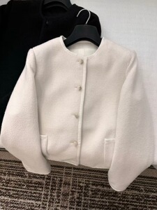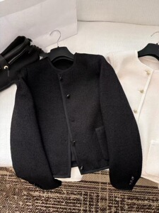Nanyou 直接供給韓国版 25 初秋クラシックパールボタン粗花ウールジャケットファッショナブルなラウンドネックスリムトップ