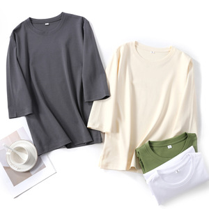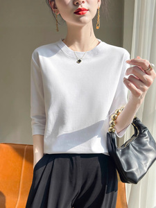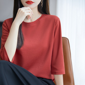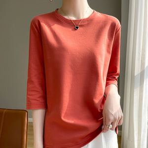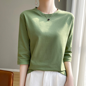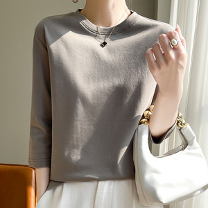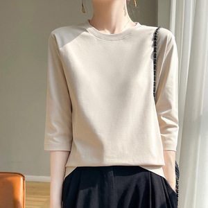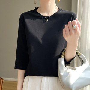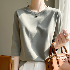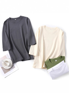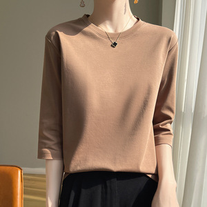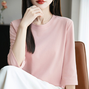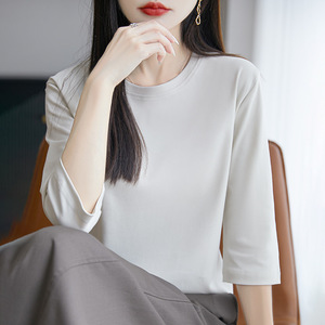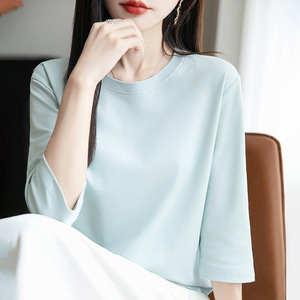 丝光棉新款气质短袖圆领套头七分袖打底衫宽松显瘦内搭外穿上衣