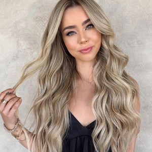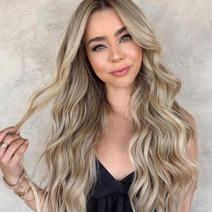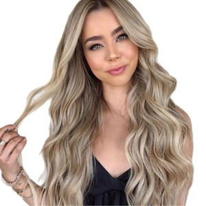 外贸欧美工厂假发 机制化纤发女士头套 棕色渐变金色中分长卷发套