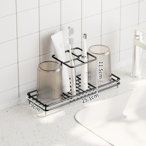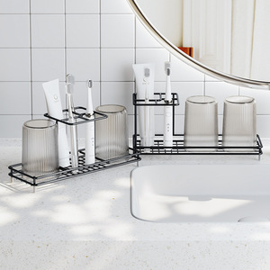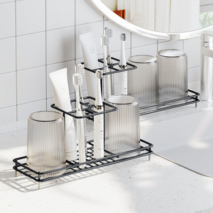 クロスボーダーホームチェック柄カウンタートップ収納ラック炭素鋼歯ブラシホルダー浴室トイレ歯磨き粉歯ブラシホルダー収納ラック