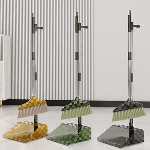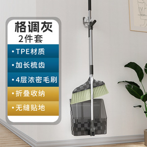 新しいチェッカーボード折りたたみちりとりほうき2点セット組み合わせ家庭用透明軽量高級ノンスティックヘアスイーパー