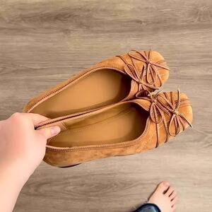 シープスキンバージョン〜新しい中国風のレトロなスクエアトゥリボン浅い口ローヒールニッチシューズ女性用フラットイブニングスタイルおばあちゃんの靴