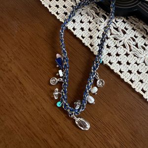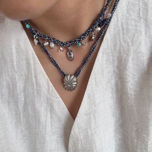 ブルー編み込みロープ天然石マルチスモールペンダントネックレス