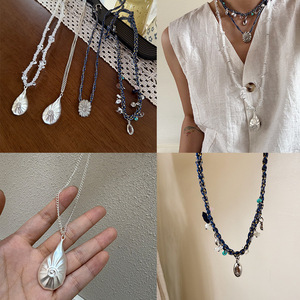 プリーツシェル編みロープネックレス、法螺貝ニッチデザイナー手編みロープ、レトロ鎖骨チェーン、シンプルペンダントジュエリー