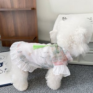 犬と猫の春夏の新しい中国風のチャイナドレスノースリーブボタン通気性のある中国風のスカートビションシーズテディ服薄い