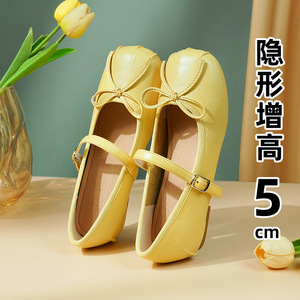 女性用インナー高さシルバーメリージェーンシューズ夏フラットフレンチ2025新しいバレエシューズスカート付き小さな革靴