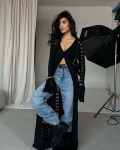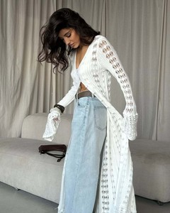 2025 フレンチリゾートスタイルの新しい中空フレアスリーブドレスカジュアルロングセーター裾ユニークなデザイン