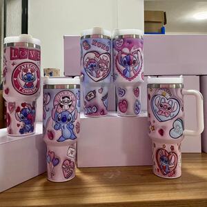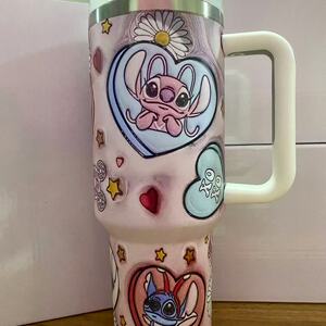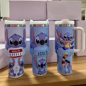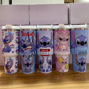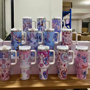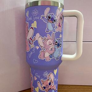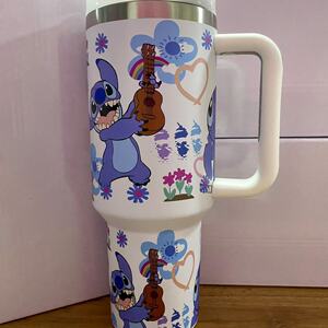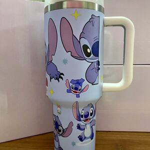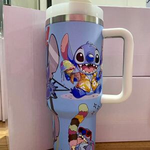 漫画風40オンス スティッチシリーズ 保温保冷カップ ハンドル付き 大容量 ストロー付き