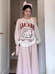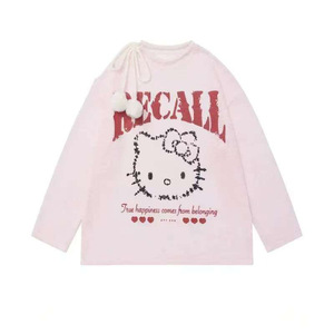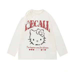 自社工場在庫あり甘いホットガール漫画日焼け止めブラウス女性の夏ルーズ怠惰な長袖 Tシャツオフショルダートップ