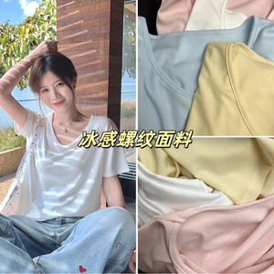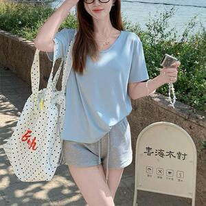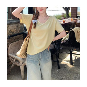 右肩Uネック白Tシャツレディース半袖2025年夏新作カジュアル無地万能ゆったりスリム半袖トップス