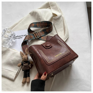 本革バケットバッグ女性の秋冬 2024 新しい高品質ニッチポータブルクロスボディバッグ