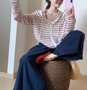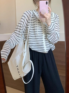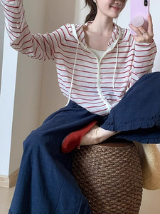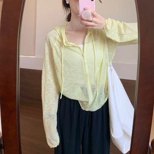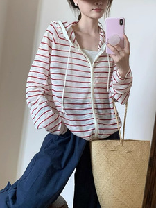 甘い気質フード付きストライプ日焼け止め服 2025 夏の新しい韓国スタイルの薄い多用途痩身トップ女性のための