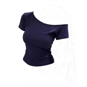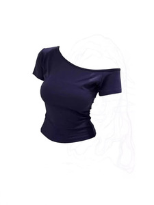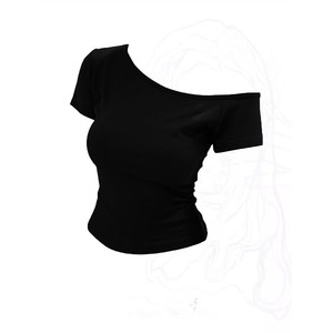 美式辣妹设计感小众纯色斜肩短袖T恤女夏季别致修身显瘦露肩上衣