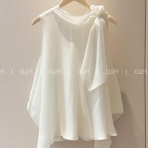 ユニークで美しい、ハイエンドでシックな半透明シャツ、フレンチトップ、白いノースリーブシャツ、2025年新作レディース夏