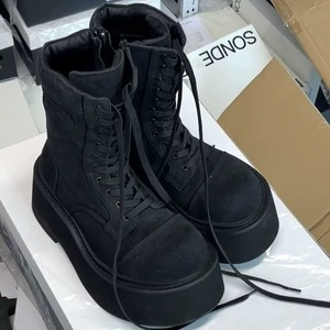 在庫あり、即発送可能〜超厚底マーティンブーツレディース新作レースアップクールナイトブーツホットガール小柄身長アップショートブーツ