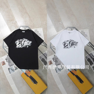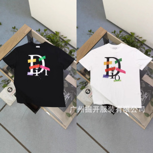 クロスボーダー 2025 Dijia トレンディなブランド夏の新しい落書き塗装レタープリント男性と女性の同じスタイルの純粋な綿半袖 T シャツ