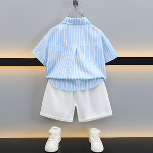 男の子サマースーツ 2025 新しい子供の夏半袖シャツハンサムベビー韓国スタイルルーズツーピーストレンディセット