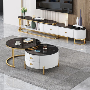 在庫あり シンプルなコーヒーテーブル テレビキャビネットの組み合わせ ホームリビングルーム ライト高級ロックプレート ベッドルーム テレビキャビネット ライト高級ロックプレート
