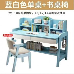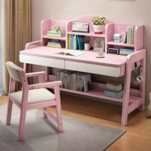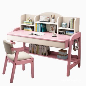 ピンクのシングルテーブル+ブックチェア[輸入無垢材調節可能なテーブル]