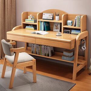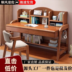 無垢材デスク 手動昇降テーブル 中学生デスク 寝室 ホーム シンプルデスク 本棚 一体型ライティングデスクと椅子