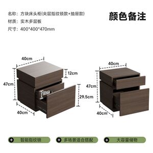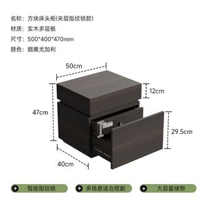 収納キャビネット指紋ロックベッドサイドキャビネットクールミー無垢材ベッドサイドキャビネットイタリアのミニマリスト寝室隠し引き出し付き