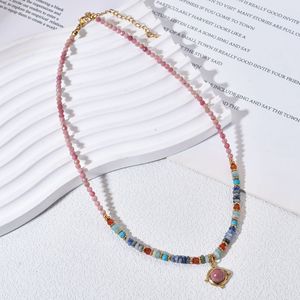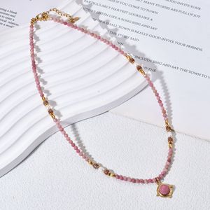 ピンクレッドストーンチタン鋼サンペンダント鎖骨チェーンニッチデザイン新鮮で多用途な天然石ビーズネックレス