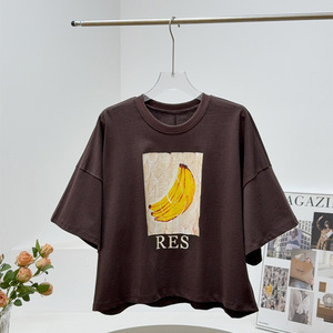 MC&25 夏新作 ドーパミンバナナプリント半袖アメリカンレトロショートコンタクト瞬間冷感コットンTシャツ