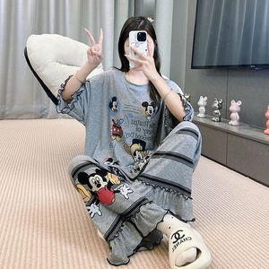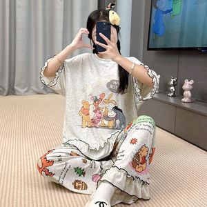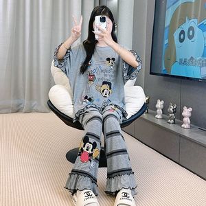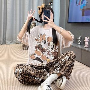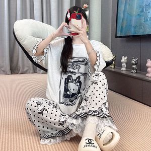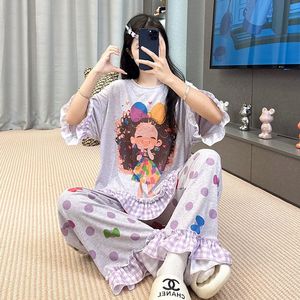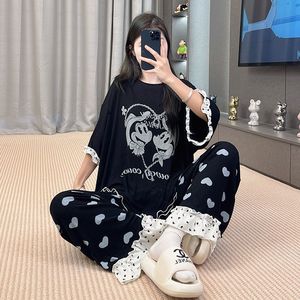 2025 新しい夏のモーダルパジャマ女性の半袖ズボンスーツ漫画ルーズ夏は家の服の外で着用できます