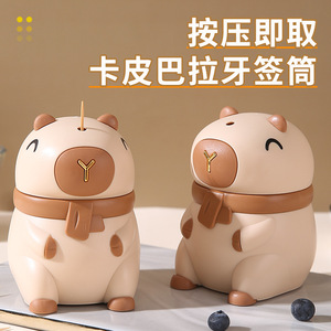 Kapibala つまようじ箱高価値漫画かわいいクリエイティブプッシュ式ポップアップつまようじ瓶家庭用つまようじ箱