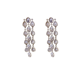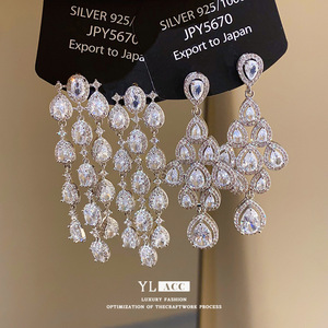 シルバー針ライト高級スタイルジルコンオーバルウォータードロップタッセルイヤリングファッショナブルで絶妙なイヤリング気質ハイエンドイヤリング女性用